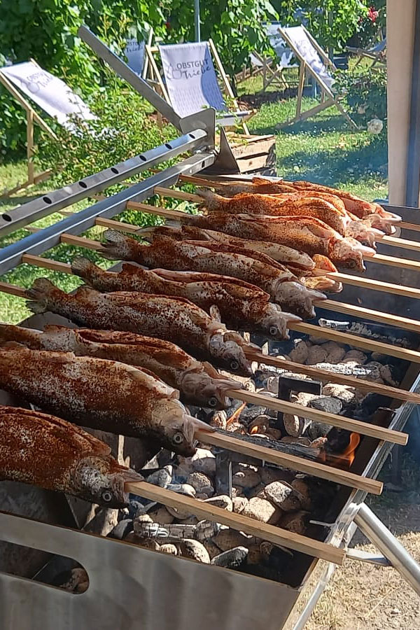 Wir räuchern für Sie ganzjährig frische Thüringer Forellen, Saiblinge, Aal, Heilbutt, Rotbarsch, Butterfisch und Lachs von bester Qualität und bieten diese vor Ort an.